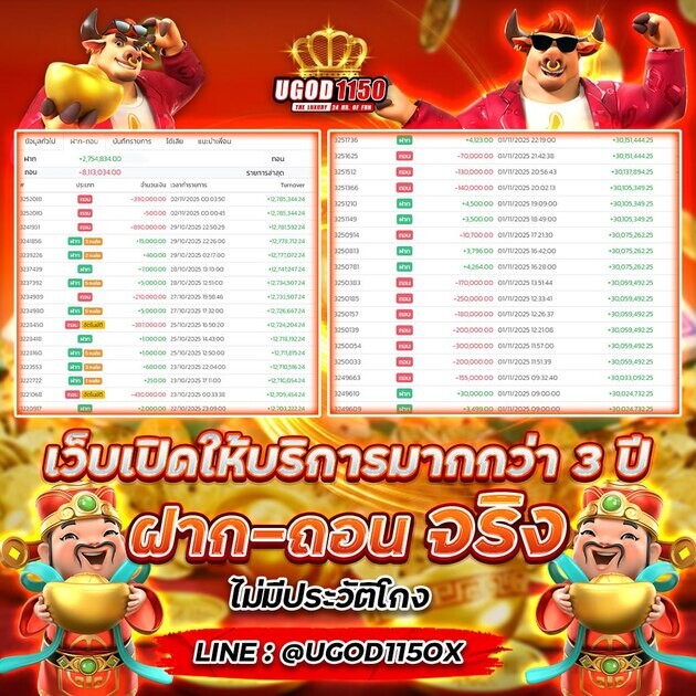 เว็บเปิดบริการมากกว่า 3 ปี ฝาก-ถอนจริง ไม่มีประวัติโกง UGOD1150